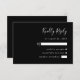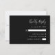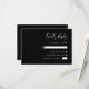 This simple modern wedding RSVP enclosure card features white text on a black background. The title appears in stylish handwriting calligraphy. Customise the remaining text in sans serif font. The reverse side is solid black.