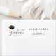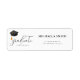 Simple and modern script graduation return address label with an elegant typography and an illustration of a black graduation cap. Illustrated and designed by Patricia Alvarez.