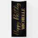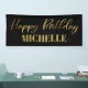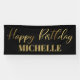 Modern and elegant black and gold "Happy birthday" party banner customised with the name of the guest of honour.