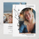 A bold, fashion-forward graduation design featuring a black handwritten script layered over a white backdrop. The arched photo window creates a modern editorial frame, giving the front a statement look that feels confident and current. The reverse side includes a multi-photo collage layout, perfect for showcasing senior portraits, beach sessions, lifestyle shots, or campus memories. The vibrant pink typography contrasts beautifully against the clean background, making this design ideal for graduates who love standout color and contemporary style.