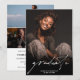 Clean, confident, and photo-focused — this modern 4 photo graduation invitation pairs bold imagery with elegant handwritten script for a timeless yet current look. The front showcases a full portrait with oversized script “graduate” typography, while the back features a 3-photo collage layout with event details in a refined serif font. The black background option creates dramatic contrast and makes senior portraits stand out beautifully, while the minimalist white back keeps everything polished and easy to read. It’s designed for grads who want their personality and photos to take center stage.