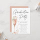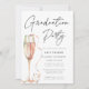 This is a minimalist and chic college/university graduation party invitation. It uses a handwritten script design in classic black and white with an elegant and celebratory flute of pink sparkling wine. Please contact the designer for any queries about this design.