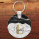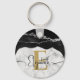 Modern Script Black White Marble Gold Monogrammed Key Ring
