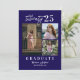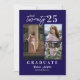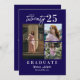This navy blue coloured modern minimal photo collage graduation announcement features both script and sans serif typography. This pairing of flowing script and modern sans serif creates a stylish balance, with the script adding sophistication and the sans serif ensuring clarity and readability. Upload your favourite photos.