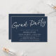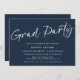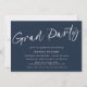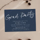 This is a modern and simple graduation party invitation. It uses a minimal and stylish handwritten script design in classic dark blue and white. Please contact the designer for any queries about this design.
