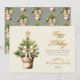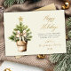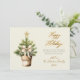 Modern Script Bow Watercolor Christmas Tree Happy Holiday Card