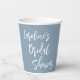 Modern Script Bridal Shower Custom Dusty Blue Paper Cups