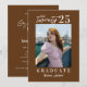 This caramel brown coloured modern minimal graduation party invitation features both script and sans serif typography. This pairing of flowing script and modern sans serif creates a stylish balance, with the script adding sophistication and the sans serif ensuring clarity and readability. Upload your favourite photo.