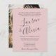 Modern Simple Script Calligraphy Photo Wedding Invitation - features the Bride and Groom's names, big and bold in modern, script typography. The back of the invitation features a beautiful photo of the bride and groom. Invitation will be part of a wedding suite and will be available in various colours. You can easily change the background colour to match your wedding theme. Shown in blush pink. A simple, classic invitation with pretty calligraphy. * Please note that this is a budget option. The photo will definitely be better quality on our flat invitation. If you prefer a thicker, better quality paper stock, please choose our flat invitation. We recommend NOT choosing the satin option for the budget invitation.