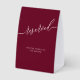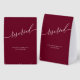 Mark special seats for the groom's family with this sophisticated burgundy table tent featuring modern script typography. The rich, deep burgundy color adds a touch of luxury and warmth to your wedding reception tables, while the elegant script font creates a refined, contemporary look.