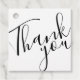 This tag features title 'Thank you' in black modern script font style with business information in black modern sans serif font style on kraft paper.