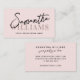 Modern script calligraphy name elegant feminine business card ideal for event planners, hair stylists, make up artists, bloggers and other professionals. Easy to edit font style and background colours.
