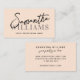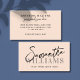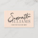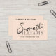 Modern script calligraphy name elegant feminine business card ideal for event planners, hair stylists, make up artists, bloggers and other professionals. Easy to edit font style and background colours.