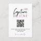 Elevate your wedding memories with our Script Capture The Love QR code Wedding Photo Share QR Code Encolosure Card. This beautifully crafted sign features delicate calligraphy, adding a touch of sophistication to your special day. Personalise it with your names and wedding date. Ideal for reception tables, gift tables, or as a keepsake. Order now to create lasting memories!