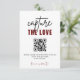 Elevate your wedding memories with our Script Capture The Love QR code Wedding Photo Share QR Code Encolosure Card. This beautifully crafted sign features delicate calligraphy, adding a touch of sophistication to your special day. Personalise it with your names and wedding date. Ideal for reception tables, gift tables, or as a keepsake. Order now to create lasting memories!