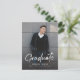 Modern script graduation announcement and invitation postcard with photos, more photo and grad party information on the back, simple and casual.