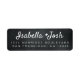 Simple and modern black and white wedding return address label with your names in white elegant handwritten script on a chalkboard background. Simply add your names and address. Exclusively designed for you by Happy Dolphin Studio. If you need any help or matching products please contact us at happydolphinstudio@outlook.com. We're happy to help you make your wedding the most beautiful day!