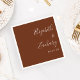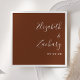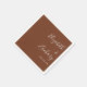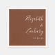 These simple, modern wedding napkins feature white text aligned to the right margin on a coffee brown background. Add the names of the bride and groom in stylish handwriting calligraphy.