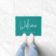 Modern Script Custom Colour Minimalist Welcome Door Mat with editable colours (click customise and change the background colour).