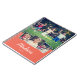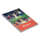 Unique custom gift with 4 favourite photos in a modern photo collage notebook with your name in a trendy hand written script and year below on a orange backdrop. Sweet little personal gift for teens, kids, or grandparents!