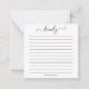 Your name in modern chic calligraphy script at the top of a lined personal notecard. Below find space for another custom message or your address as stationery.