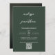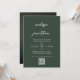 Modern Script Dark Green Monogram QR code Wedding Invitation
