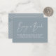 Modern script dusty blue baby shower bring a book card