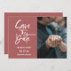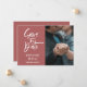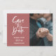 Modern white script, Wedding Save the Date Photo Card. Features, chic dusty cedar colour backgrounds and single photo template on front.