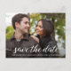 Introducing our Modern Script Engagement Photo Save The Date Postcard, a chic and customisable way to announce your engagement and share the exciting news of your upcoming wedding. This postcard features a stunning modern script font with long-tailed embellishments, adding a touch of elegance and sophistication to the design.