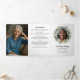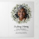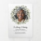 Custom memorial service programs with a modern floral design offer a beautiful and heartfelt way to honour and celebrate the life of a loved one. This elegant folded layout features a photo tribute on the front cover, framed with a soft wreath of watercolor eucalyptus greenery, alongside your loved one's name, dates of life, and a touching “In Loving Memory” message. Inside, the program provides space for the order of service, an obituary, and a poem, scripture or quote, giving families the opportunity to share memories, and meaningful words. The back panels feature acknowledgements and a second photo. The clean, modern typography paired with subtle watercolor greenery accents creates a timeless and uplifting design that balances dignity with warmth. Perfect for funerals, memorial services, or celebrations of life, these programs not only guide guests through the service but also serve as a keepsake that family and friends can cherish as a lasting remembrance.
