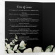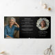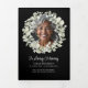 Elegant floral memorial service programs with a black background and soft greenery accents provide a timeless and heartfelt way to celebrate the life of a loved one. The front cover features a beautiful photo tribute framed by a delicate wreath of watercolor eucalyptus, paired with the words “In Loving Memory” along with your loved one's name, dates of life, and a meaningful sentiment. Inside, the program includes customisable sections for the order of service, an obituary, a poem, quote or scripture, offering families a dignified way to honour memories while guiding attendees through the ceremony. The layout also allows space for acknowledgements and expressions of gratitude, making it a thoughtful keepsake for guests. The combination of elegant typography, dark background, and soft watercolor greenery creates a refined design that balances reverence with warmth. Perfect for funerals, memorials, and celebrations of life, these programs not only serve a practical role but also become a lasting remembrance for family and friends to cherish.