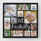 Modern Script FAMILY Name Photo Collage Monogram Square Wall Clock