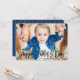 Celebrate your dad's special day by giving him a stylish Father's Day photo card. The modern Father's Day card features "Happy Father's Day" in a black script font, placeholders for text and a photo, and a navy blue herringbone pattern on the back.