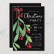 Modern Script Floral Mistletoe Xmas Holiday Black Invitation