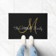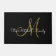 A Modern script gold white monogram on black, large doormat, for your entryway.