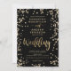 Modern yellow gold foil confetti glitter black wedding invitation with an elegant script calligraphy brush.
