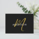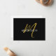 Create your own monogram for your notecards with this unique brush script gold initial with your name overlay in white, on a black background.