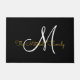 A Modern script gold white monogram on black, large doormat, for your entryway.