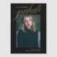 A modern photo graduation announcement magnet featuring graduate script type overlay and large portrait photo.