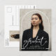 Celebrate your graduate in style with the Modern Script Graduate Photo Arch Graduation Party Postcard. Featuring an elegant script font and a unique arch photo layout, this postcard is perfect for inviting family and friends to the celebration. A sophisticated and memorable way to mark this special milestone.