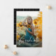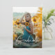 A Modern Script Graduate Simple Photo Graduation Announcement card with handwritten font full bleed portrait photo on the front with name and graduation details. Modern Black and White grid pattern backer. Click the edit button to customise this design.