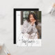Celebrate your graduate with this modern photo graduation announcement and invitation in a black and white colour scheme. Featuring a unique photo shape with a curved edge on the front, this graduation announcement also has a bold modern script "graduate" and customisable text for name and year. The black back features invitation text along with a matching script "Join us to celebrate the grad!" This original graduate announcement and invitation by Lea Delaveris Design is part of a collection of graduation announcements, party supplies, decor, gifts and more. Find more styles and colours in the collection. Also available as a digital graduation announcement download!