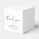 Modern graduation party favour box featuring "Thank You" in a chic script and the grad's name and party date in simple typography.