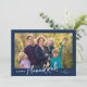 This Hanukkuh flat greeting card features a horizontal photo on a dark blue background and is accented with modern handwriting script text.