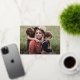 Modern Script Happy Holidays Photo Foil Holiday Card. The back has a second photo and heartfelt message from the family. Click personalise to customise this design with your photos and details.