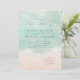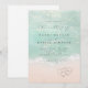 Beautiful turquoise abstract watercolor sparkling ocean wave and hearts in the sand beach background, toped with stylish script and elegant serif font, modern and simple. Great wedding invitation for nautical beach wedding, tropical destination wedding, coastal ocean themed wedding in summer.