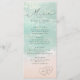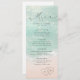 Beautiful turquoise abstract watercolor sparkling ocean wave and hearts in the sand beach background, toped with stylish script and elegant serif font, modern and simple. Great wedding menu cards for nautical beach wedding, tropical destination wedding, coastal ocean themed wedding in summer.