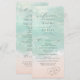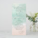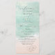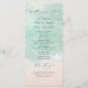Beautiful turquoise abstract watercolor sparkling ocean wave and hearts in the sand beach background, toped with stylish script and elegant serif font, modern and simple. Great wedding programs for nautical beach wedding, tropical destination wedding, coastal ocean themed wedding in summer.