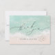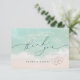 Beautiful turquoise abstract watercolor sparkling ocean wave and hearts in the sand beach background, toped with stylish script and elegant serif font, modern and simple. Great thank you cards for nautical beach wedding, tropical destination wedding, coastal ocean themed wedding in summer.