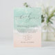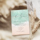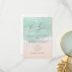 Beautiful turquoise abstract watercolor sparkling ocean wave and hearts in the sand beach background, toped with stylish script and elegant serif font, modern and simple. Great thank you cards for nautical beach wedding, tropical destination wedding, coastal ocean themed wedding in summer.